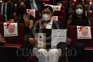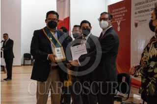 ZACATECAS, ZACATECAS, 03DICIEMBRE2021 .- Oswaldo Pinedo Barrios, secretario de salud en representación del gobernador del estado David Monreal Ávila, realizó la entrega de preseas "Miguel Hidalgo" a las y los trabajadores de diversas aéreas del sector salud de Zacatecas por su labor en atención del Covid-19. FOTO: DIANA VALDEZ/CUARTOSCURO.COM