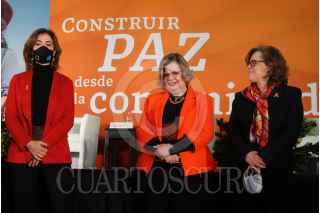 CIUDAD DE MÉXICO, 03DICIEMBRE2021.- Nadine Gasman, directora del Instituto Nacional de las Mujeres (INMUJERES), en compañía de María Fabiola Alanis Sámano, comisionada Nacional para Prevenir y Erradicar la Violencia contra las Mujeres y Belén Sanz Luque, representante de la ONU Mujeres México, encabezó la conferencia del Encuentro Nacional de Mujeres Constructoras de Paz por el 45 aniversario de la primer encuentro de mujeres en Tlatelolco. FOTO: GALO CAÑAS/CUARTOSCURO.COM
