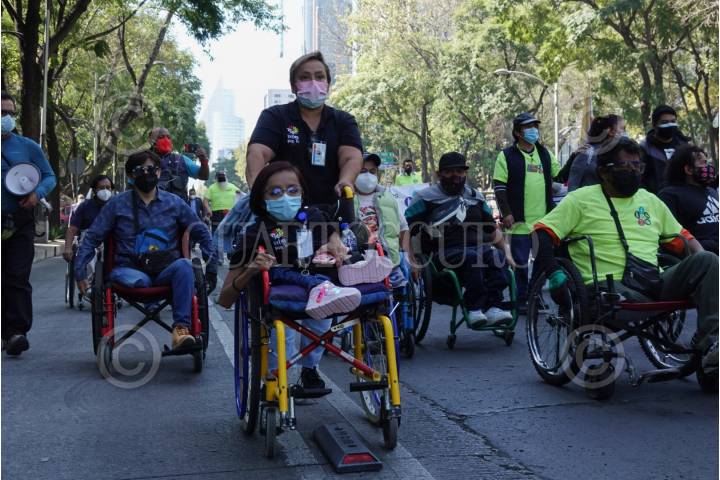 CIUDAD DE MÉXICO, 03DICIEMBRE2021.- Personas con discapacidad visual, motriz y auditiva marcharon del Ángel de la Independencia al Zócalo capitalino para exigir inclusión y trabajos dignos para dicho sector. FOTO: GALO CAÑAS/CUARTOSCURO.COM