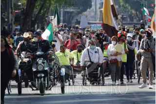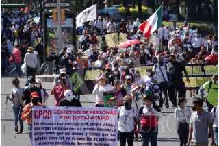 CIUDAD DE MÉXICO, 03DICIEMBRE2021.- Personas con discapacidad visual, motriz y auditiva marcharon del Ángel de la Independencia al Zócalo capitalino para exigir inclusión y trabajos dignos para dicho sector. FOTO: GALO CAÑAS/CUARTOSCURO.COM