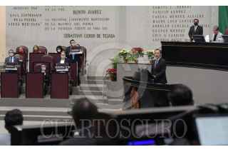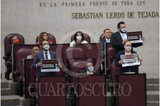 XALAPA, VERACRUZ, 03DICIEMBRE2021.- Los diputados del Grupo Legislativo del PAN, Miguel Hermida Copado, Verónica Pulido Herrera y Enrique Cambranis, acusaron al gobernador, Cuitláhuac García Jiménez, de “encarcelar a opositores” durante la Sesión Solemne en el Congreso local para galardonar a Luis Antonio Rodríguez Pulido con el premio Medalla y Diploma “Adolfo Ruiz Cortines”. FOTO: YERANIA ROLÓN/CUARTOSCURO.COM