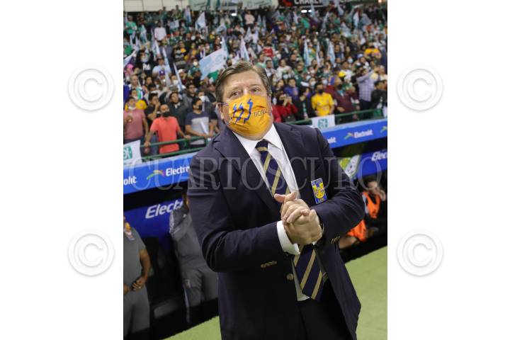 LEÓN, GUANAJUATO, 04DICIEMBRE2021.- Los esmeraldas del León enfrentaron a los Tigres de la UANL, y se clasificaron a la final del torneo Grita México Apertura 2021 por el criterio de mejor posición en la tabla. Marcador final y global: Léon 2 (3) - 1 (3) Tigres. FOTO: JORGE ORTEGA/CUARTOSCURO.COM