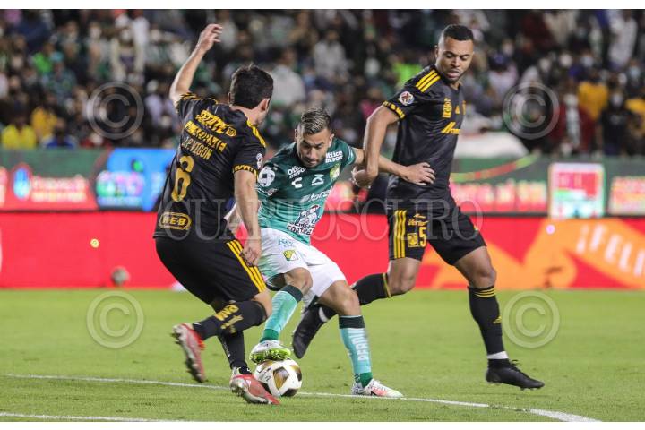 LEÓN, GUANAJUATO, 04DICIEMBRE2021.- Los esmeraldas del León enfrentaron a los Tigres de la UANL, y se clasificaron a la final del torneo Grita México Apertura 2021 por el criterio de mejor posición en la tabla. Marcador final y global: Léon 2 (3) - 1 (3) Tigres. FOTO: JORGE ORTEGA/CUARTOSCURO.COM