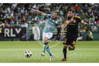 LEÓN, GUANAJUATO, 04DICIEMBRE2021.- Los esmeraldas del León enfrentaron a los Tigres de la UANL, y se clasificaron a la final del torneo Grita México Apertura 2021 por el criterio de mejor posición en la tabla. Marcador final y global: Léon 2 (3) - 1 (3) Tigres. FOTO: JORGE ORTEGA/CUARTOSCURO.COM