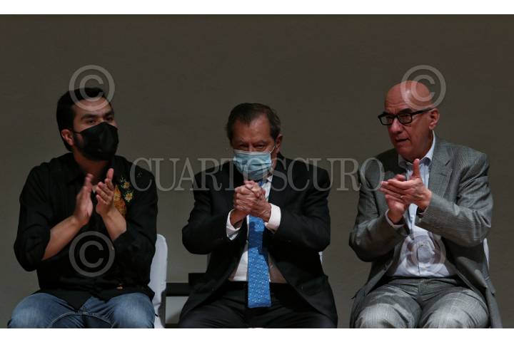 CIUDAD DE MÉXICO, 05DICIEMBRE2021. - Porfirio Muñoz Ledo, recibió el premio Nacional Benito Juárez, al mérito ciudadano por su trayectoria, entregado por Dante Delgado, coordinador nacional del Partido Político Movimiento Ciudadano. El evento se llevó a cabo en el WTC. FOTO: ANDREA MURCIA /CUARTOSCURO.COM