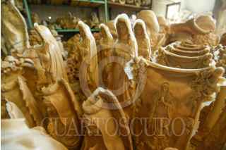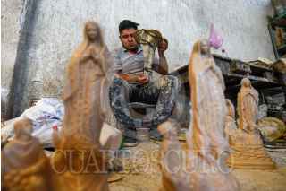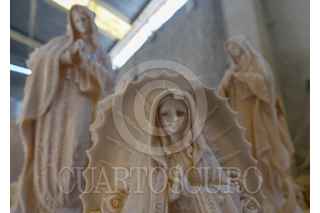 TOLUCA, ESTADO DE MÉXICO, 06DICIEMBRE2021.- Salvador de Jesús González quien dirige el taller Jodart en San Andrés Cuexcontitlán, se dedican a la elaboración de diversas figuras de resina, como las religiosas, de temporada, Ángeles, hadas y otras; previo a la celebración de la Virgen de Guadalupe es una de las figuras más pedidas y junto con otras 7 personas se dedican a elaborar estas imágenes de todos tamaños. Las figuras can de los 25 centímetros hasta un metro con 80 centímetros, sus precios oscilan desde los 110 pesos hasta poco más de 700 pesos dependiendo del trabajo y tamaño de cada imagen. Durante la pandemia por COVID-19 muchos talleres tuvieron que cerrar sus puertas ante la falta de trabajo, siendo que esta comunidad del norte del municipio de Toluca se dedica a esto, actualmente comienzan a reactivarse y estas imágenes se van a toda la República Mexicana. FOTO: CRISANTA ESPINOSA AGUILAR /CUARTOSCURO.COM