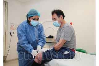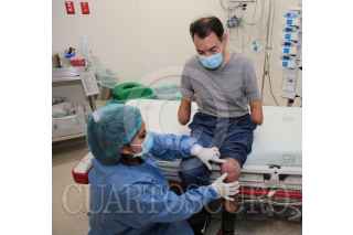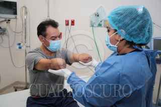 CIUDAD DE MÉXICO, 06DICIEMBRE2021.- Médicos del Hospital de Traumatología del Instituto Mexicano del Seguro Social (IMSS), en Magdalena de las Salinas, salvaron, después de 15 cirugías, la pierna de un hombre de 55 años que recibió una descarga eléctrica mientras trabajaba; debido a las quemaduras perdió ambos brazos. La energía de alto voltaje consumió las extremidades superiores y dañó severamente la pierna izquierda del paciente José Alfredo, ésta se pudo conservar aun cuando perdió hueso, músculos y estructuras vitales de movilidad en la rodilla y sobre todo la función, explicó la doctora Claudia Berenice Hernández Valverde, cirujana plástica reconstructiva con especialidad en el área de quemados. Refirió que por las quemaduras que sufrió el derechohabiente, estaba indicado el manejo radical para su pierna izquierda, pero el equipo multidisciplinario de especialistas hizo todo lo posible por salvarla. FOTO: IMSS/CUARTOSCURO.COM