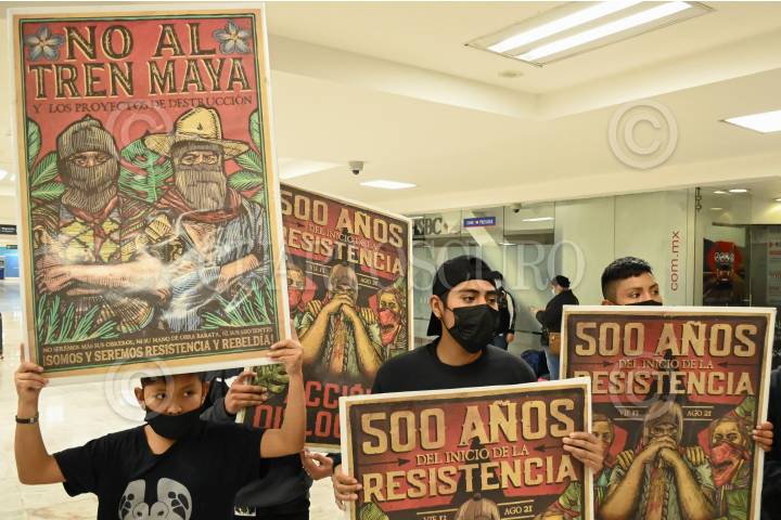 CIUDAD DE MÉXICO, 06DICIEMBRE2021.- El escuadrón 421 perteneciente al EZLN, arribó está noche a la capital del país luego de visitar la ciudad de Madrid, España, para participar en distintos eventos donde pudo transmitir su mensaje en torno a la desigualdad social y económica generada a partir del sistema capitalista. Los integrantes del escuadrón fueron recibidos por sus compañeros zapatistas en las instalaciones del AICM. FOTO: DANIEL AUGUSTO /CUARTOSCURO.COM