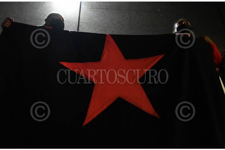 CIUDAD DE MÉXICO, 06DICIEMBRE2021.- El escuadrón 421 perteneciente al EZLN, arribó está noche a la capital del país luego de visitar la ciudad de Madrid, España, para participar en distintos eventos donde pudo transmitir su mensaje en torno a la desigualdad social y económica generada a partir del sistema capitalista. Los integrantes del escuadrón fueron recibidos por sus compañeros zapatistas en las instalaciones del AICM. FOTO: DANIEL AUGUSTO /CUARTOSCURO.COM