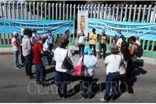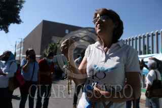 CUERNAVACA, MORELOS, 07DICIEMBRE2021.- Activistas de la organización Pro Vida rezan el Rosario afuera del Congreso de Morelos, piden que no se discuta ni se apruebe ley que permitiría la interrupción del embarazo a las doce semanas. FOTO: MARGARITO PÉREZ RETANA / CUARTOSCURO.COM
