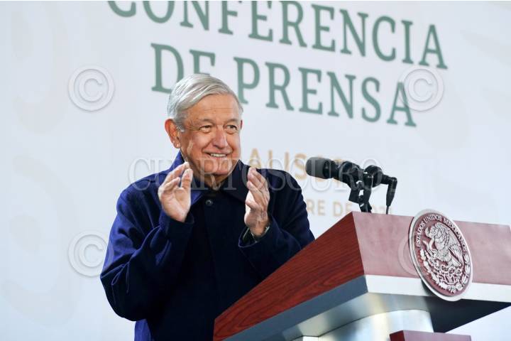 ZAPOPAN, JALISCO, 07DICIEMBRE2021.- Andrés Manuel López Obrador, Presidente de México, encabezó la conferencia matutina en la 15 Zona Militar, ubicada en Av. General Ramón Corona, ahí recibió su tercer refuerzo de la vacuna contra el Covid-19, junto con algunos integrantes de su gabinete. FOTO: PRESIDENCIA/CUARTOSCURO.COM