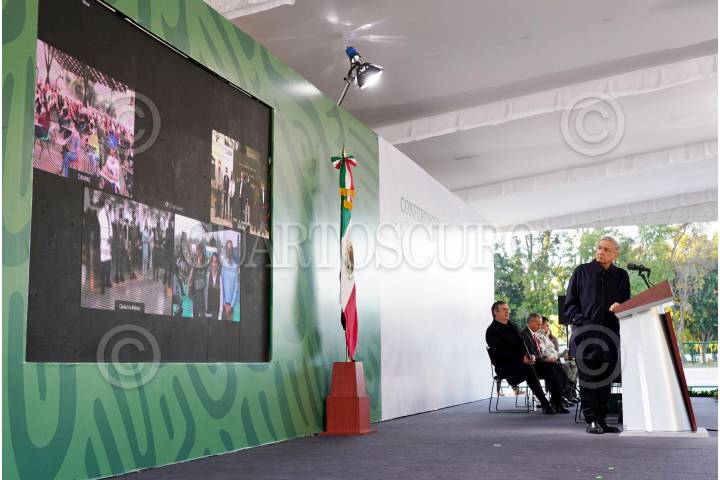ZAPOPAN, JALISCO, 07DICIEMBRE2021.- Andrés Manuel López Obrador, Presidente de México, encabezó la conferencia matutina en la 15 Zona Militar, ubicada en Av. General Ramón Corona, ahí recibió su tercer refuerzo de la vacuna contra el Covid-19, junto con algunos integrantes de su gabinete. FOTO: PRESIDENCIA/CUARTOSCURO.COM