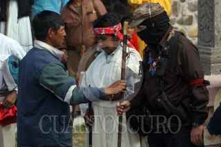 SISOGUICHI, CHIHUAHUA 31OCTUBRE2006.-El Subcomandate Marcos, Delegado Zero de La Otra Campaña del EZLN recibe el bastón de mando de los indígenas Raramuris en la sierra Tarahumara. FOTO: MOYSÉS ZÚÑIGA SANTIAGO/CUARTOSCURO