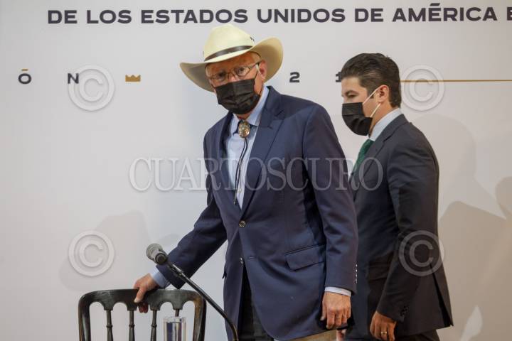 MONTERREY, NUEVO LEÓN, 07DICIEMBRE2021.- El gobernador del estado Samuel García, recibió al embajador de Estados Unidos en México Ken Salazar, donde sostuvieron una reunión en el primer encuentro de gobernadores y embajada Americana, para realizar acuerdos y proyectos en tema de Seguridad en los estados de Nuevo León, Tamaulipas, Coahuila y San Luis Potosí. FOTO: GABRIELA PÉREZ MONTIEL/ CUARTOSCURO