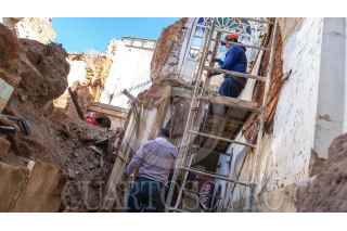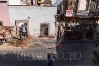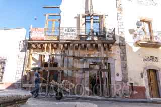 ZACATECAS, ZACATECAS, 07DICIEMBRE2021.- Desde 2015, esta famosa casona ubicada en la calle Juan de Tolosa, cerca del callejón Indio Triste en el centro de la capital zacatecana tuvo que ser desalojada tras su derrumbe, esto debido a que la casona vecina colapso dañando el inmueble mencionado poco a poco. Tras las fuertes lluvias, la humedad y el escombro acumulado el problema se ha echo aun mas grande afectando por completo toda la estructura y creando un efecto domino, dañando ya la edificación vecina. Según uno de lo propietarios, el señor Sergio Luna Castañedas, las autoridades no han puesto cartas en el asunto a pesar de las demandas que el propietario a impuesto por lo que se vieron obligados a empezar con los trabajos por su cuenta hasta conseguir respuesta por parte de presidencia facilitando un camión para recolectar todos los escombros, labores que comenzaron a penas esta semana, esto por el miedo a que el edificio colapse por completo y las bóvedas que se encuentras debajo resulten afectadas. FOTO: DIANA VALDEZ/CAURTOSCURO.COM