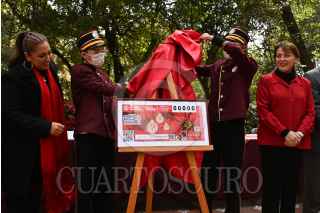 CIUDAD DE MÉXICO, 07DICIEMBRE2021.- Margarita González Saravia, directora general de la Lotería Nacional, acompañada de Eduardo Villegas, coordinador de Memoria Histórica y Cultural de México, encabezaron el evento de la develación del boleto de lotería al sorteo gordo de Navidad, este año en alusión a la flor de Noche Buena. FOTO: DANIEL AUGUSTO /CUARTOSCURO.COM