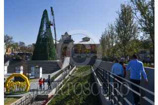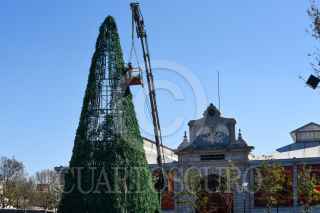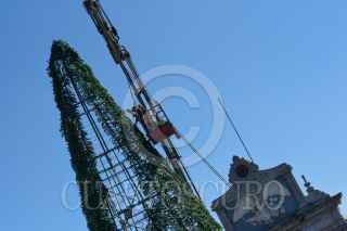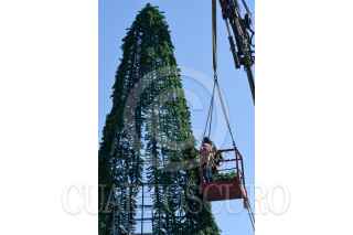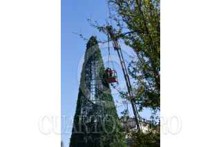 TOLUCA, ESTADO DE MÉXICO, 08DICIEMBRE2021.- Trabajos de instalación de árbol de Navidad monumental en el Parque de la Ciencia Fundadores con motivo de las fiestas decembrinas. FOTO: CRISANTA ESPINOSA AGUILAR /CUARTOSCURO.COM