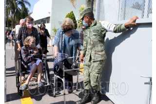 CUERNAVACA, MORELOS, 08DICIEMBRE2021.-Una gran respuesta tiene la convocatoria para que personas de mas de 65 años acudan a aplicarse la dosis de refuerzo de la vacuna contra el Covid-19 en el Hospital Militar de la capital del estado Dos mil doscientas dosis de la vacuna Astra Zeneca se aplicaron, algunas personas que llegaron después de medio día no alcanzaron a inocularse la vacuna, pero mañana se continuara con la vacunación. FOTO: MARGARITO PÉREZ RETANA / CUARTOSCURO.COM