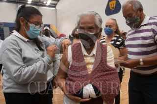 CIUDAD DE MÉXICO, 08DICIEMBRE2021.- Adultos mayores de 60 años, habitantes de la alcaldía Tlalpan, acudieron a recibir la tercera dosis de la vacuna Astra Zeneca en el módulo de vacunación en la Escuela Nacional Preparatoria 5 "José Vasconcelos". El horario será del 8 al 11 de diciembre, de 9 a 16 horas. FOTO: GRACIELA LÓPEZ /CUARTOSCURO.COM