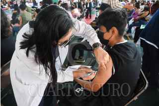 CAMPECHE, CAMPECHE, 08DICIEMBRE2021.- Continua la jornada de inoculación contra el Covid-19 para adolescentes de 15 a 17 años sin comorbilidades en Campeche, hoy toco el turno para personas de 15 años. Hasta el momento se han aplicado 3 mil 362 dosis Pfizer. FOTO: MICHAEL BALAM/CUARTOSCURO.COM