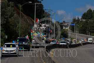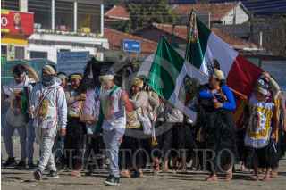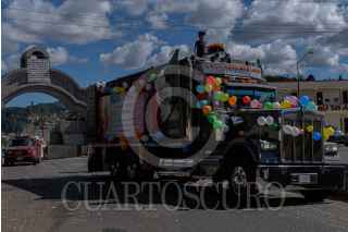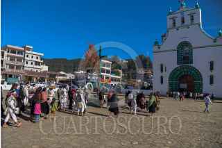 SAN JUAN CHAMULA, CHIAPAS, 08DICIEMBRE2021.- Cientos de indígenas de San Juan Chamula comenzaron a peregrinar por lo largo y ancho del territorio Mexicano en los primeros días de diciembre en honor a la Virgen de Guadalupe; sus fieles en largas caravanas de autobúses o camiones de carga o a pie se ven partir de sus localidades para viajar a varios puntos de la República Mexicana. Durante estos días las carreteras hacia la capital del país se saturan de peregrinos que van al santuario. San Juan Chamula es uno de los municipios de Chiapas con más files católicos, así también son reconocidos por la mezcla de tradiciones mayas y católicas y desde 1531 han adoptado esta tradición inculcando por los frailes católicos. FOTO: JOSE SANTIZ /CUARTOSCURO.COM