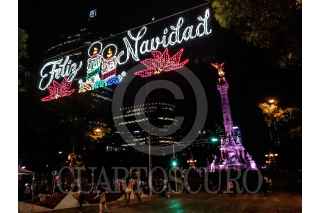 CIUDAD DE MÉXICO, 08DICIEMBRE2021.- En el Ángel de la Independencia ya luce enmarcado con las tradicionales luces navideñas que engalanan avenida Reforma. FOTO: ELIZABETH RUIZ/CUARTOSCURO.COM