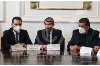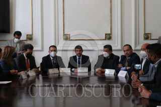 CIUDAD DE MÉXICO, 09DICIEMBRE2021. - Mauricio Tabe, alcalde de Miguel Hidalgo, entregó esta mañana en el Congreso de la Ciudad la propuesta 2022 de presupuesto para su alcaldía. Fue recibida por Cristian Von, coordinador del grupo parlamentario PAN en el Congreso. FOTO: ANDREA MURCIA /CUARTOSCURO.COM