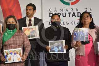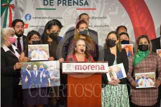CIUDAD DE MÉXICO, 09DICIEMBRE2021.- Ivonne Cisneros Luján, en compañía de diputados de Morena, ofrecieron conferencia de prensa para manifestarse en contra de la reclasificación que realizó la Fiscalía de Guanajuato que pasó de violación espuria a abuso sexual en contra de Jorge Romero Vázquez, ex diputado del PAN, quien ahora podrá seguir su proceso en libertad. FOTO: MARIO JASSO/CUARTOSCURO.COM