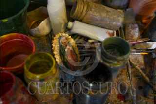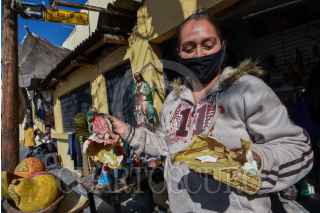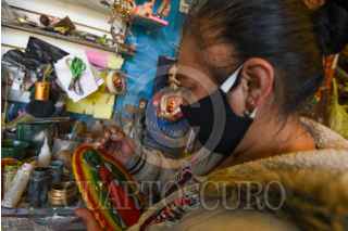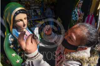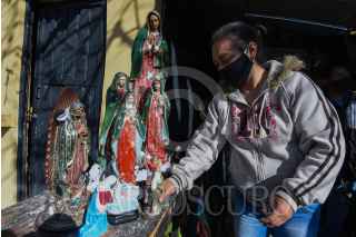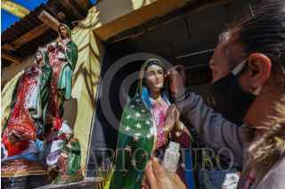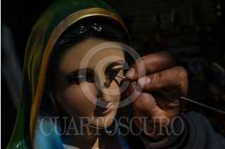 TOLUCA, ESTADO DE MÉXICO, 09DICIEMBRE2021.- Santa Mirza Sánchez Hernández y su marido Jaír Rico realizan la reparación de vírgenes de Guadalupe, ella aprendió al casarse y lleva 10 años dedicándose a este trabajo, ubicados en el barrio de Zopilocalco en Toluca a espaldas del Planetario, en algunas ocasiones sus dos pequeños hijos también les apoyan aprendiendo este oficio, en su pequeño taller reparan imágenes de yeso, resina, madera, porcelana, barro y fibra de vidrio, las imágenes que reparan tienen un gran valor sentimental para sus clientes y ellos buscan que todas estas figuras queden como nuevas, los precios varían dependiendo del trabajo de reparación, el número de imágenes que les llegan aumentan conforme se acerca el día de la celebración de la Virgen Guadalupana. FOTO: CRISANTA ESPINOSA AGUILAR /CUARTOSCURO.COM