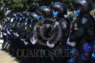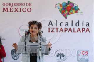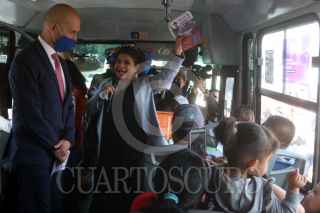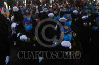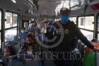 CIUDAD DE MÉXICO, 09DICIEMBRE2021.- Clara Brugada, alcaldesa de Iztapalapa, presidió el inicio del "Programa Transporte Seguro", el cual aplica revisiones y acompañamiento de elementos de la Policía a unidades de transporte público de pasajeros en Avenida Periférico y Calzada Ignacio Zaragoza durante el mes de diciembre, con el objetivo de prevenir el incremento de la comisión de delitos. El acto de realizó en Avenida Periférico Oriente y Eje 5. FOTO: GRACIELA LÓPEZ /CUARTOSCURO.COM