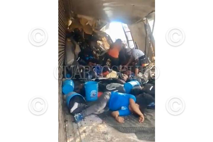 TUXTLA GUTIÉRREZ, CHIAPAS, 09DICIEMBRE2021.- Un tráiler que transportaba en su caja migrantes de manera ilegal se quedó sin frenos volcando en la carretera Chiapa de Corzo, a la altura de la colonia El Refugio. Autoridades estatales han confirmado 49 muertes y al menos 50 heridos, tres de ellos de gravedad. FOTO: CUARTOSCURO.COM