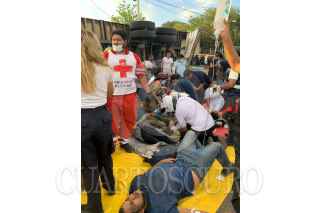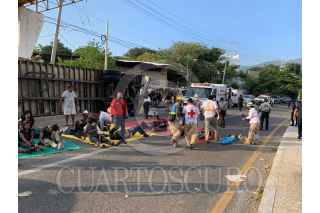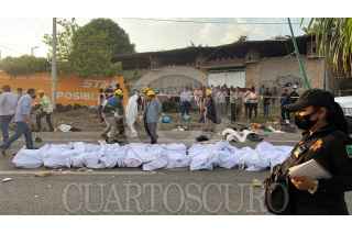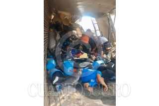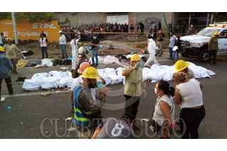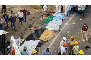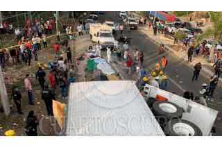 TUXTLA GUTIÉRREZ, CHIAPAS, 09DICIEMBRE2021.- Un tráiler que transportaba en su caja migrantes de manera ilegal se quedó sin frenos volcando en la carretera Chiapa de Corzo, a la altura de la colonia El Refugio. Autoridades estatales han confirmado 49 muertes y al menos 50 heridos, tres de ellos de gravedad. FOTO: CUARTOSCURO.COM
