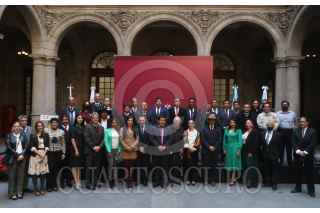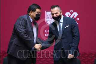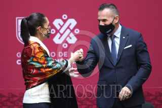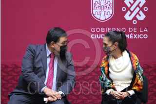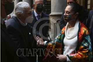 CIUDAD DE MÉXICO, 10DICIEMBRE2021.- Claudia Sheinbaum, jefa de Gobierno; José Carlos Acosta Ruíz, alcalde de Xochimilco; Loredana López Montes López, directora General del Fideicomiso del Centro Histórico, y Fréderic Vacheron Oriol, representante de la oficina de la UNESCO en México, encabezaron el 34 Aniversario de la Declaratoria del Centro Histórico de la Ciudad de México y Xochimilco como Patrimonio Cultural de la Humanidad. FOTO: GRACIELA LÓPEZ /CUARTOSCURO.COM