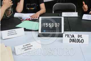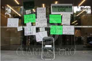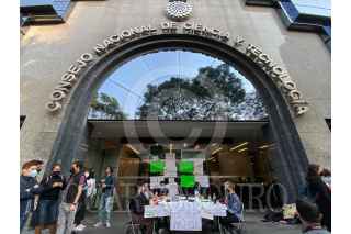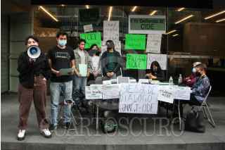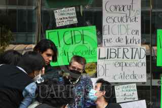 CIUDAD DE MÉXICO, 10DICIEMBRE2021.- Estudiantes del Centro de Investigación y Docencia Económicas (CIDE), colocaron una mesa de diálogo frente a la sede del Consejo Nacional de Ciencia y Tecnología (Conacyt), esto luego de que la titular María Elena Álvarez-Buylla, accediera a entablar conversación con los estudiantes. Luego de al rededor de 5 horas de espera los estudiantes se retiraron debido a la ausencia de María Elena Álvarez-Buylla. FOTO: ROGELIO MORALES /CUARTOSCURO.COM
