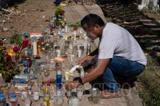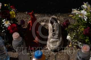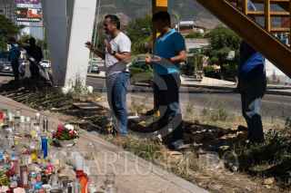TUXTLA GUTIÉRREZ, CHIAPAS, 11DICIEMBRE2021.- Después de la volcadura de un tráiler que transportaba a más de 150 personas de origen guatemalteco principalmente en la carretera Tuxtla - Chiapa de Corzo y en el cual perdieron la vida 55 migrantes, habitantes de la región han acudido al lugar de los hechos para llevar velas y rezar por los fallecidos y sus familiares. FOTO: ISABEL MATEOS /CUARTOSCURO.COM