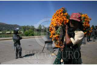 OAXACA, OAXACA 31 DE OCTUBRE 2006.- Empiezan las celebraciones de día de muertos, pasando desapercivida a lo elementos de la PFP quienes esperan ordenes para actuar. FOTO: MAX NUÑEZ/CUARTOSCURO.COM