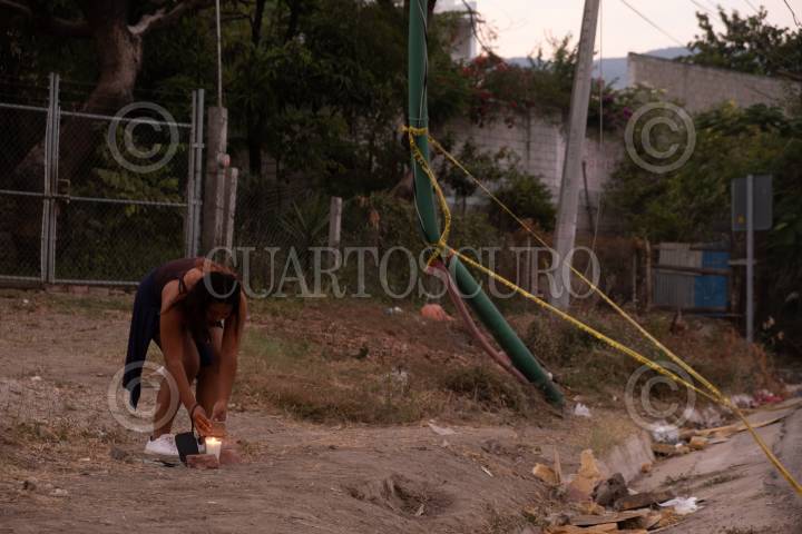 TUXTLA GUTIERREZ, CHIAPAS, 12DICIEMBRE2021.- Decenas de vecinos y pobladores de la región acuden durante el día y la noche a realizar oraciones por los 55 fallecidos, sus familias y los más de 100 heridos en el accidente automovilístico el pasado jueves. Un grupo de jóvenes inició un mural en la pared donde padecieron cientos de migrantes un trágico accidente al ser transportados en un trailer más de 100 personas. FOTO: ISABEL MATEOS /CUARTOSCURO.COM