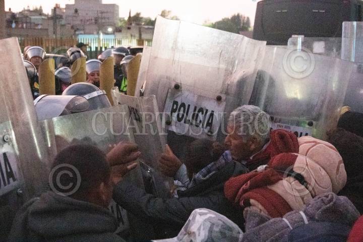 CIUDAD DE MÉXICO, 12DICIEMBRE2021.- Elementos de la Secretaría de Seguridad Ciudadana impidieron el paso a la Caravana Migrante que pretendía continuar con su andar hasta la Basílica de Guadalupe, desde muy temprano salieron de Río Frío, rumbo al templo guadalupano, y cuando las autoridades se los impidieron intercambiaron golpes, entre los integrantes de la caravana había muchos niños que se vieron envueltos en la trifulca. Los hechos ocurrieron sobre la autopista México-Puebla, a la altura de la Concordia. FOTO: MOISÉS PABLO/CUARTOSCURO.COM