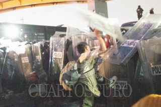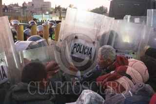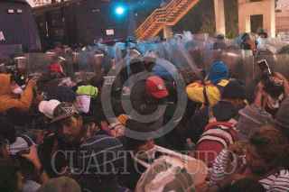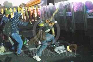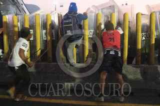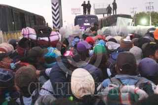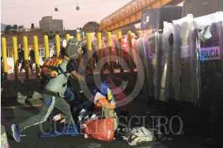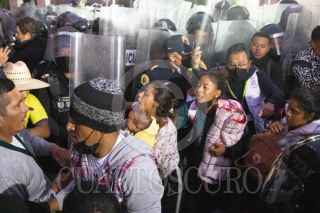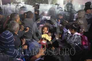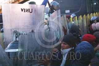 CIUDAD DE MÉXICO, 12DICIEMBRE2021.- Elementos de la Secretaría de Seguridad Ciudadana impidieron el paso a la Caravana Migrante que pretendía continuar con su andar hasta la Basílica de Guadalupe, desde muy temprano salieron de Río Frío, rumbo al templo guadalupano, y cuando las autoridades se los impidieron intercambiaron golpes, entre los integrantes de la caravana había muchos niños que se vieron envueltos en la trifulca. Los hechos ocurrieron sobre la autopista México-Puebla, a la altura de la Concordia. FOTO: MOISÉS PABLO/CUARTOSCURO.COM