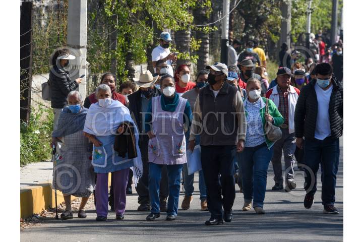 METEPEC, ESTADO DE MÉXICO, 13DICIEMBRE2021.- Largas filas se observaron en el centro de vacunación del Tecnológico Regional de Toluca ubicado en Metepec al iniciar la aplicación del refuerzo de la vacuna contra COVID-19 a personas mayores de 60 años, el biológico aplicado fue el de AstraZeneca. FOTO: CRISANTA ESPINOSA AGUILAR /CUARTOSCURO.COM