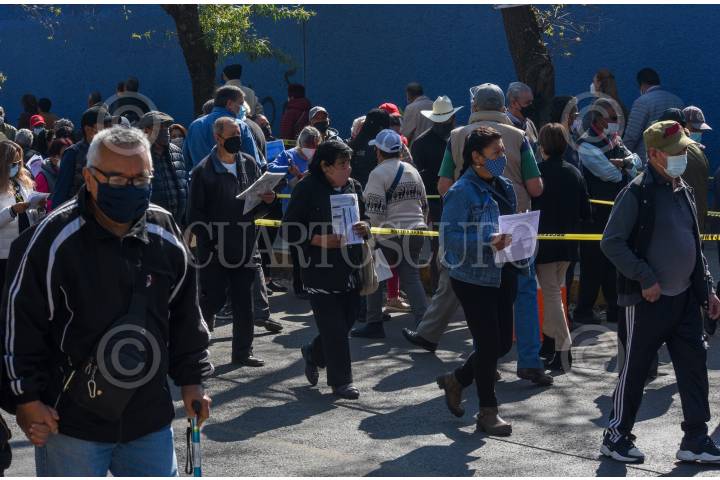 METEPEC, ESTADO DE MÉXICO, 13DICIEMBRE2021.- Largas filas se observaron en el centro de vacunación del Tecnológico Regional de Toluca ubicado en Metepec al iniciar la aplicación del refuerzo de la vacuna contra COVID-19 a personas mayores de 60 años, el biológico aplicado fue el de AstraZeneca. FOTO: CRISANTA ESPINOSA AGUILAR /CUARTOSCURO.COM