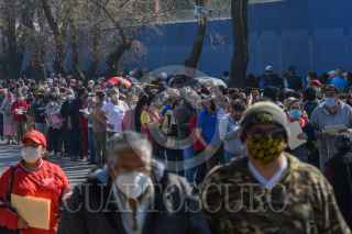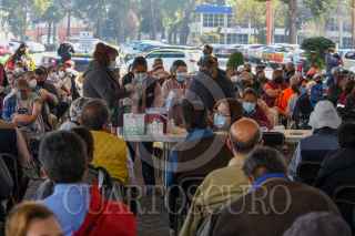METEPEC, ESTADO DE MÉXICO, 13DICIEMBRE2021.- Largas filas se observaron en el centro de vacunación del Tecnológico Regional de Toluca ubicado en Metepec al iniciar la aplicación del refuerzo de la vacuna contra COVID-19 a personas mayores de 60 años, el biológico aplicado fue el de AstraZeneca. FOTO: CRISANTA ESPINOSA AGUILAR /CUARTOSCURO.COM