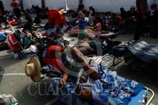 CIUDAD DE MÉXICO, 13NOVIEMBRE2021.- Migrantes que el día de ayer arribaron a la ciudad permanecen en la Casa del Peregrino en donde autoridades les acondicionaron para que pudieran descansar tras su travesía desde Chiapas, ayer por la tarde se enfrentaron a policías cuando intentaban llegar a la Basílica de Guadalupe. FOTO: MOISÉS PABLO/CUARTOSCURO.COM