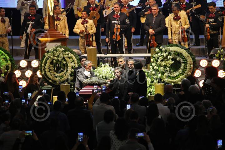GUADALAJARA, JALISCO, 13DICIEMBRE2021.- Esta tarde en la Arena VFG ubicada a un costado del Rancho Los Tres Potrillos y en compañía de familiares, amigos y admiradores, se llevo a cavo la misa de cuerpo presente para despedir los restos de “El Charro de Huentitán” Vicente Fernández Gómez, quien falleció por problemas de salud la madrugada del pasado domingo, en un conocido Hospital de la ciudad. FOTO: FERNANDO CARRANZA GARCIA / CUARTOSCURO.COM