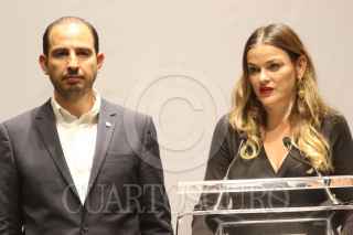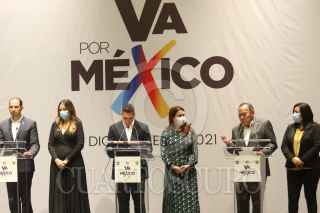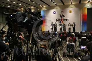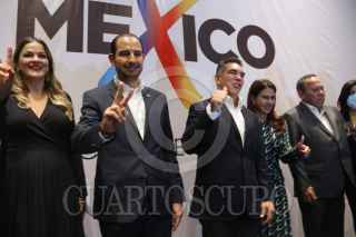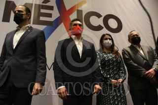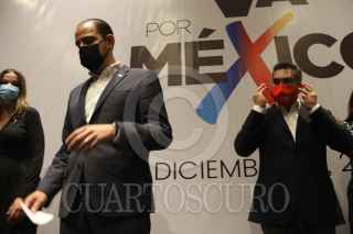 CIUDAD DE MÉXICO. 14DICIEMBRE2021.- Dirigentes de los traa partidos integrantes de la Alianza Va X México; Marko Cortés del PAN, del PRI Alejandro Moreno, y del PRD Jesús Zambrano, hablaron ante medios de información en un conocido hotel del Centro de la Capital Mexicana. FOTO: VICTORIA VALTIERRA/CUARTOSCURO.COM