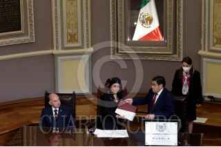 PUEBLA, PUEBLA, 14DICIEMBRE2021.- Luis Miguel Barbosa, Gobernador del estado, rindió su tercer informe de labores ante el Congreso del Estado. FOTO: MIREYA NOVO/CUARTOSCURO.COM