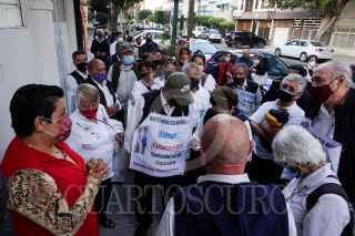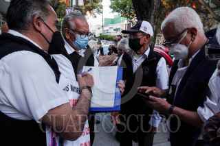 CIUDAD DE MÉXICO, 14DICIEMBRE2021.- Empacadores de la tercera edad marcharon de metro Eugenia al Instituto Nacional de las Personas Adultas Mayores (INAPAM) para continuar su proceso para exigir a la empresa Walmart que restituya sus puestos de trabajo, esto tras enviarlos a casa durante la pandemia por Covid-19. Carlos Ezcurdia Fernández, vocero del Grupo Empacadores Voluntarios Adultos Mayores, expresó que ya son más de 500 las y los adultos que buscan reincorporarse al trabajo pues son el único sostén de su familia, o bien, es su único ingreso para su subsistencia. FOTO: GALO CAÑAS/CUARTOSCURO.COM