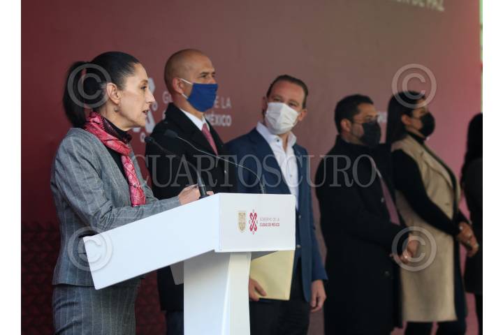 CIUDAD DE MÉXICO, 14DICIEMBRE2021.- Claudia Sheinbaum Pardo, jefa de Gobierno de la Ciudad; Martí Batres Guadarrama, Secretario de Gobierno; Santiago Taboada Cortina, alcalde de Benito Juárez y Salvador Guerrero Chiprés, presidente del Consejo ciudadano de seguridad pública y procuración de justicia, durante Instalación del Gabinete de Seguridad y la Mesa de Paz en la Alcaldía Benito Juárez. FOTO: ANDREA MURCIA /CUARTOSCURO.COM