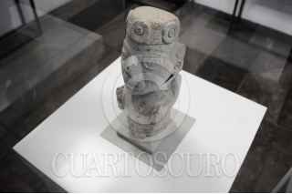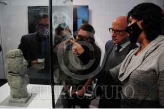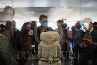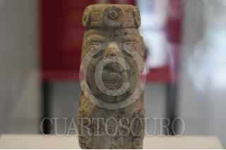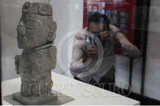 CIUDAD DE MÉXICO, 15DICIEMBRE2021.- Esta mañana fue inaugurada la exposición de la escultura Xochipilli, figura encontrada sobre la calle Violeta, en el antiguo barrio de Santa María Cuepopan, perteneciente a Tenochtitlán. La pieza será exhibida en una de las salas del Templo Mayor, en el Centro Histórico. FOTO: DANIEL AUGUSTO /CUARTOSCURO.COM