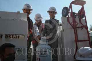 CIUDAD DE MÉXICO, 14DICIEMBRE2021.- Claudia Sheinbaum Pardo, jefa de Gobierno de la Ciudad; Gustavo Álvarez Vázquez, director del Gas del Bienestar, y Armando Quintero Martínez, alcalde de Iztacalco, durante la puesta en marcha del Gas del Bienestar en la alcaldía Iztacalco. FOTO: ANDREA MURCIA /CUARTOSCURO.COM